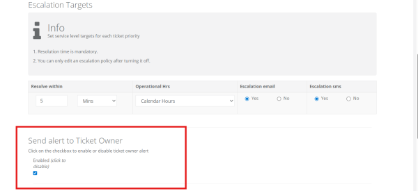 Steps to Enable Send Alert to Ticket Owner